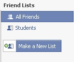 I made a friend list for my students, cleverly titled “Students”. Make friend lists under the Friends tab at the top of every page (a snapshot is below).