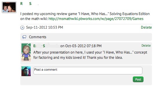 Global Math Department is helping folks all over the place*. After Remi Smith (who blogs at The Math Smith) presented a favorite review game called “I Have, Who Has…” in September, she got the following feedback from another colleague:
