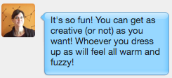 Holy crap, yes! I can only speak for me, but I LOVED seeing Julie dress as me last year. What an honor that *she* picked *me*. Y’know?